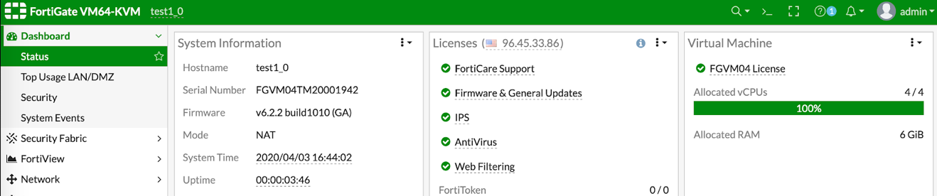 The following license activation example was done on a FortiOs 6.2.2 VM.